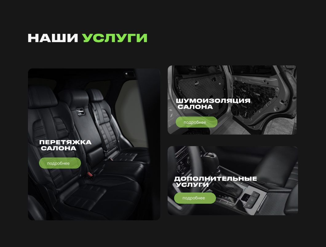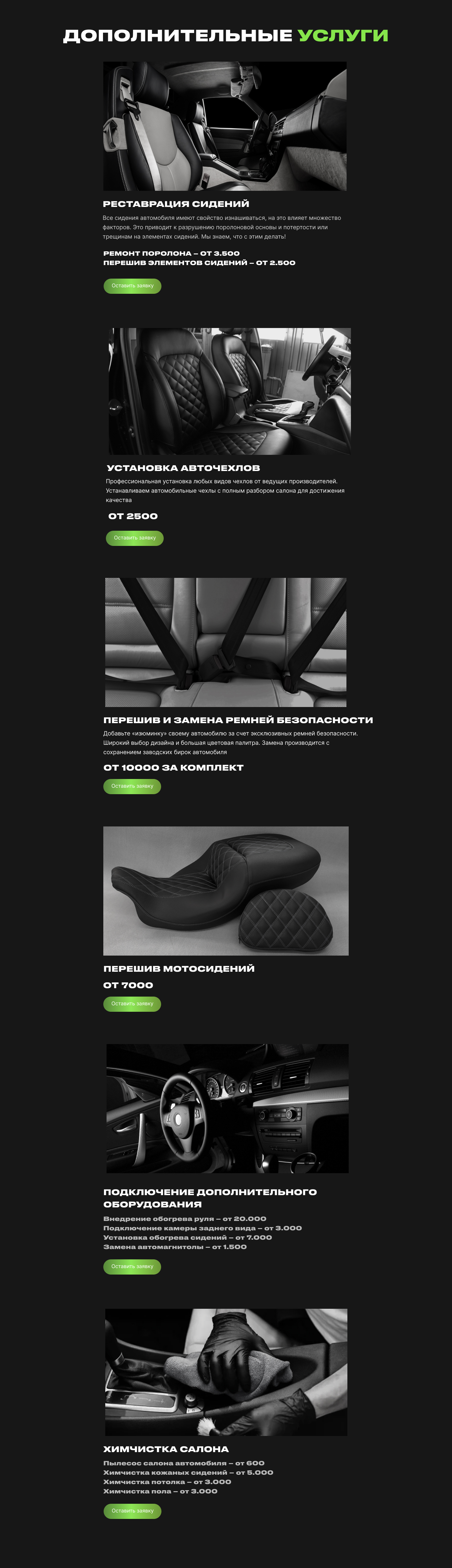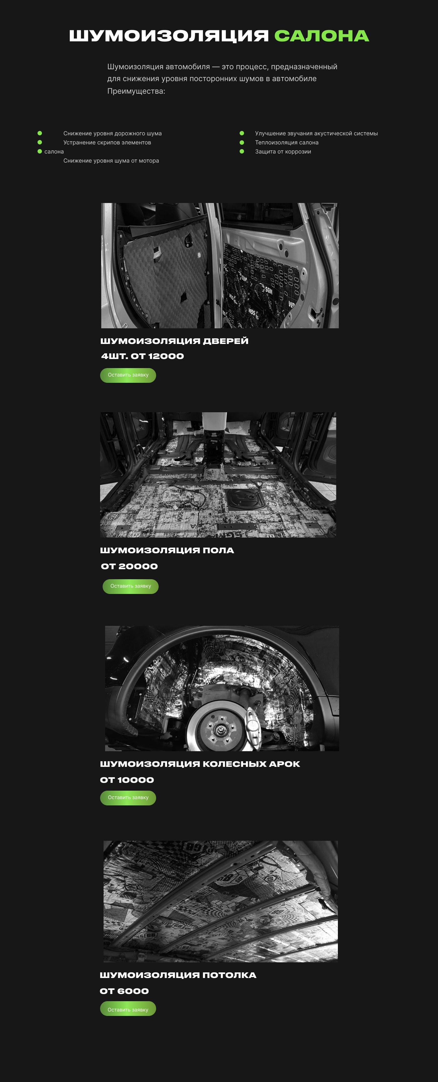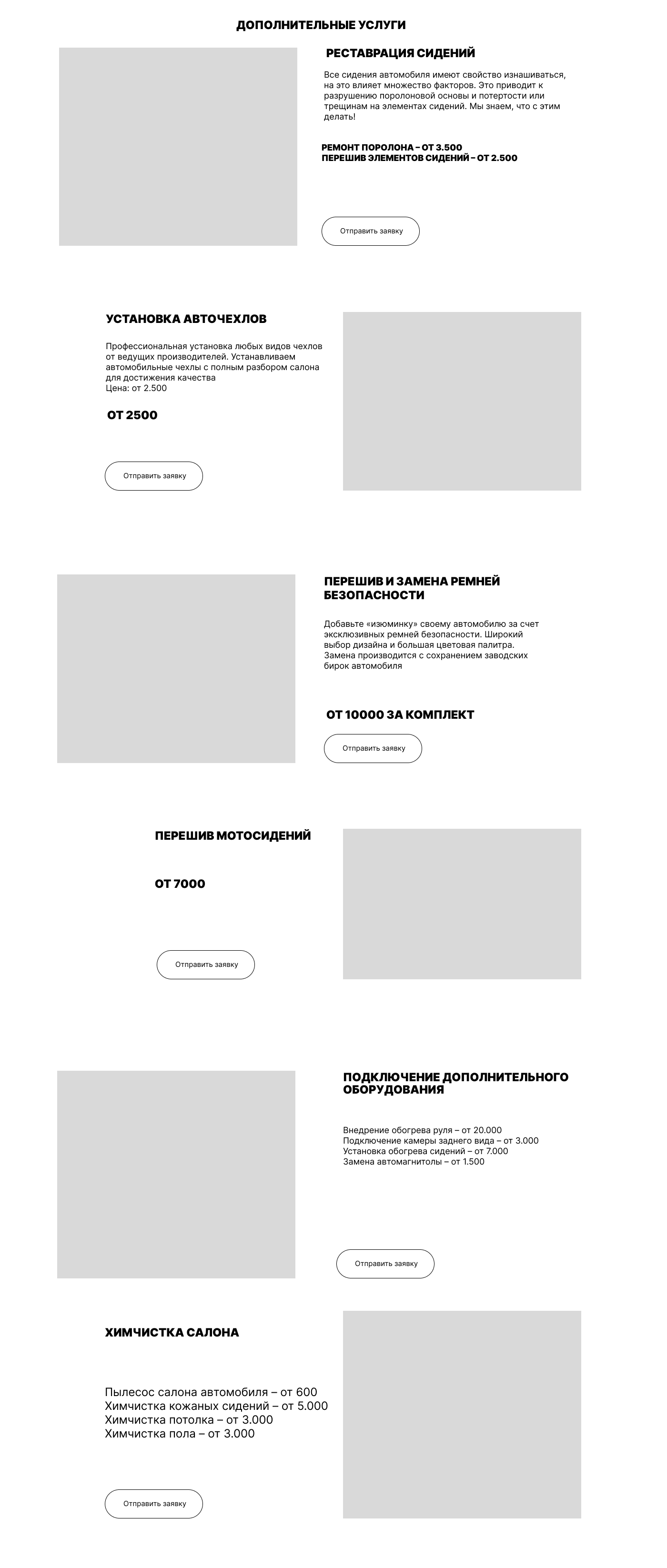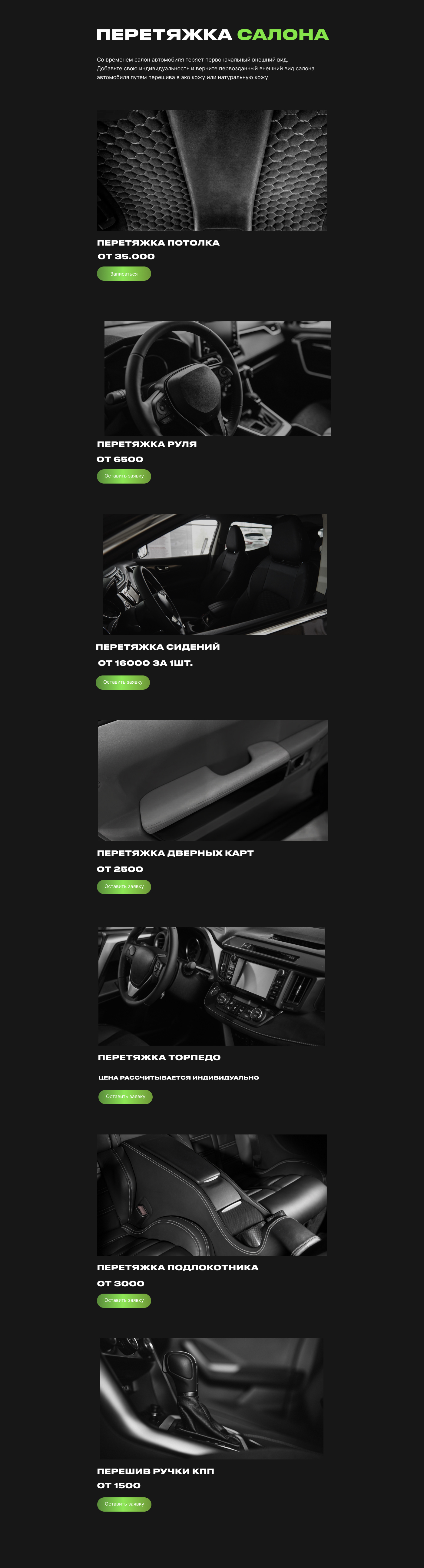 Под каждую услугу сделала отдельную страницу с описанием работ и ценами. С возможностью оставить заявку.