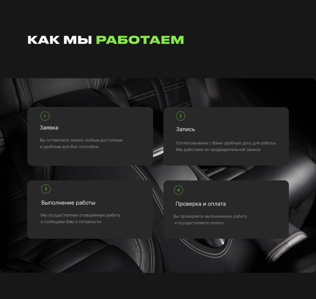 Показываем основные условия и правила работы автоателье, так же закрываем вопрос ЦА — что нужно чтобы получить услугу компании.
