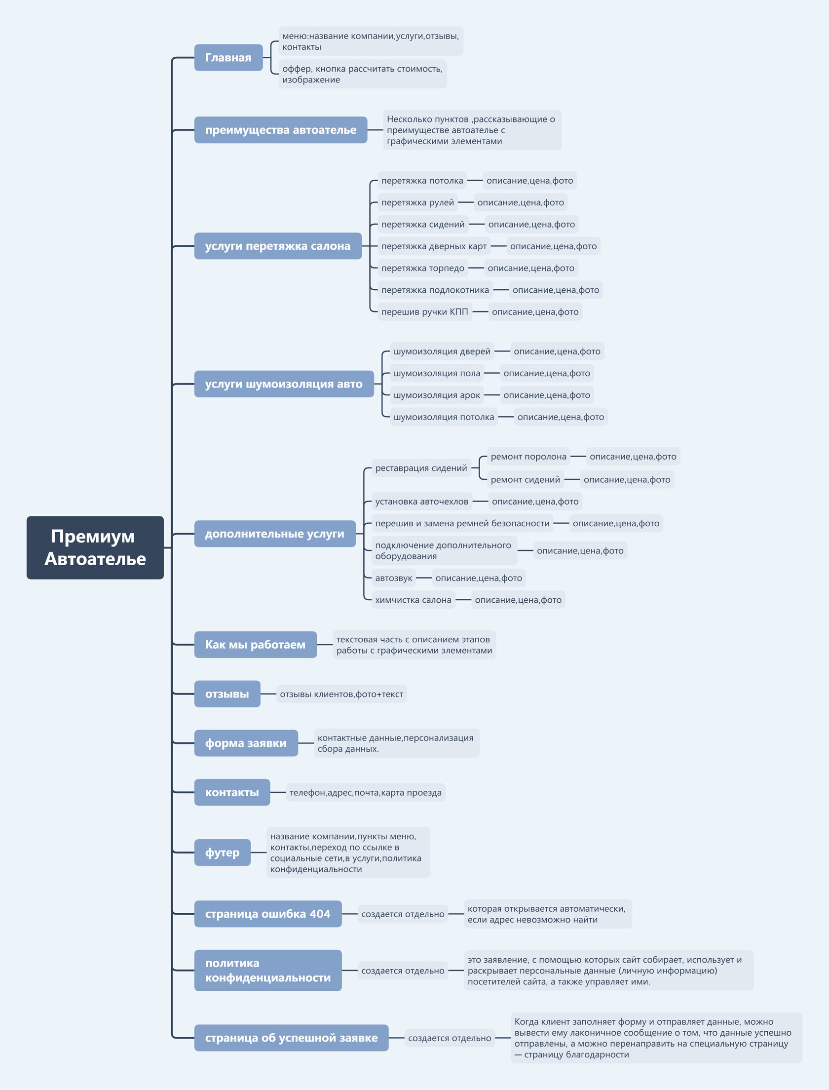 После интервью создала структуру сайта: какие смыслы и в каком порядке доносим до пользователей.